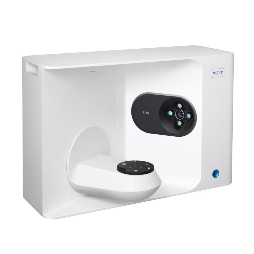 Serie t la nueva y mejorada serie t hemos implementado una renovación completa del diseño de nuestros escáneres de mesa de la serie t. El resultado es un escáner sofisticado y de líneas modernas que le ofrecerá unos resultados excelentes, ¡con estilo! Somos la empresa que desarrolló el primer escáner de mesa de luz azul, y ahora le presentamos el medit t710, el escáner de mesa más rápido de medit. Características escaneo súper rápido con nuestro hardware de alta calidad y el software optimizado del escáner t710, podrá escanear un arco completo en apenas 8 segundos (t710). Sistema abierto disfrute de la libertad de nuestro sistema abierto, que le permitirá importar y exportar archivos en formato stl, de modo que podrá diseñar prácticamente en cualquier software. Elevación automática con nuestra función de elevación automática, despídase de tener que apilar haf-jigs para lograr una posición correcta para el escaneo. La elevación automática le facilitará su trabajo. Alta precisión precisión de 4 micras: iso 12836 (t710). Cámaras de alta resolución nuestras cámaras de 5.0 Mp garantizan que los datos escaneados sean detallados y de alta resolución. Gracias al sistema de cuatro cámaras, el t710 abarca un área amplia de escaneo, con lo que se eliminan los puntos ciegos.
